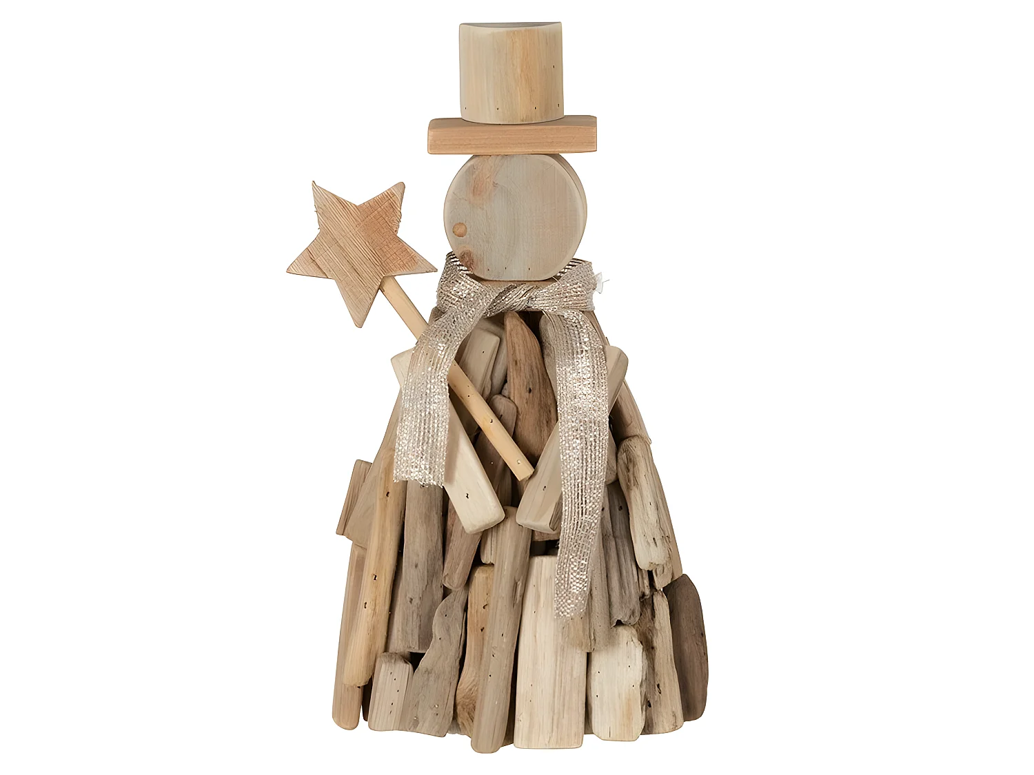 Bonhomme de neige avec étoile en bois naturel 14x8x30 cm