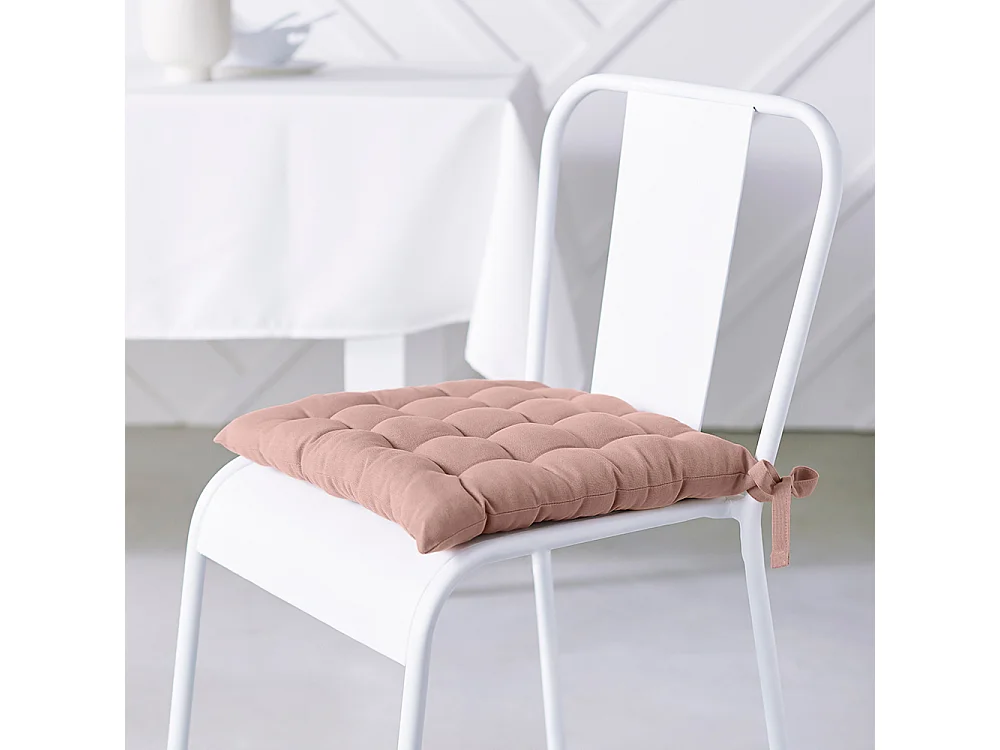 Lot de 6 galettes de chaises matelassées en coton - Rose - 38 x 38 cm