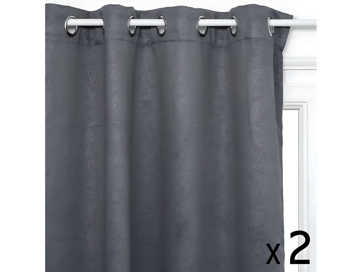 Lot de 2 Rideaux à œillets Occultant Gris Foncé Feuille en relief 140 x 260 cm