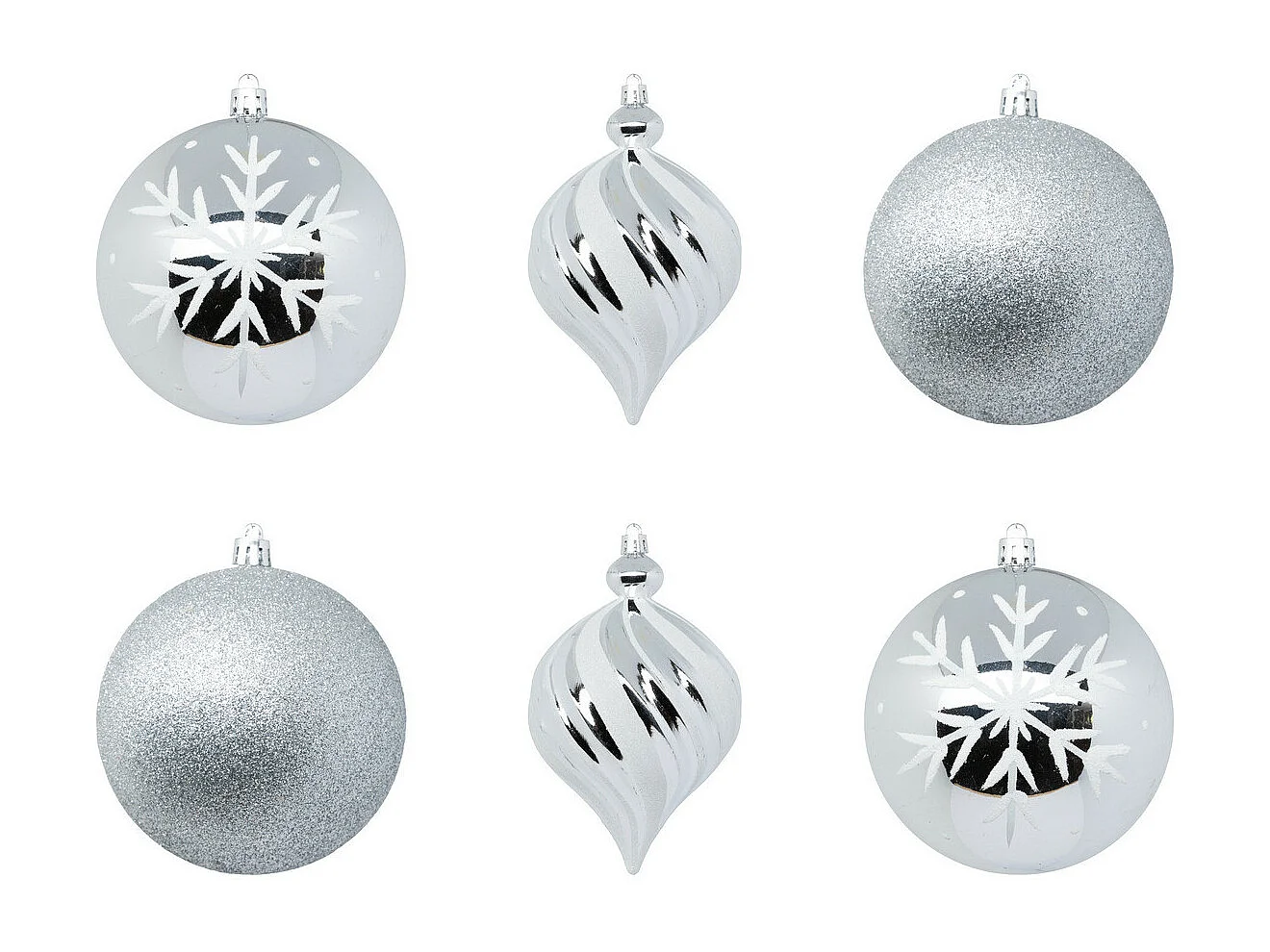Déco de sapin Lot de 6 Boules de Noël D 10 cm - Argent et Blanc